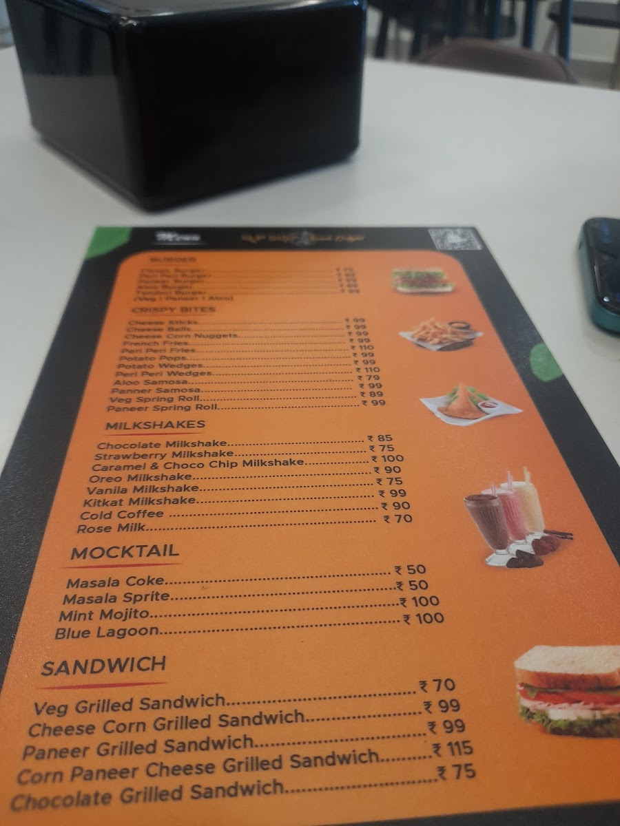 The café specializes in mouthwatering snacks and flavorful drinks that are sure to tantalize your taste buds. Indulge in their Crispy Bites section, where you can savor cheesy treats like Cheese Sticks, Cheese Balls, and Cheese Corn Nuggets, all priced at just ₹99. For those who crave something a bit more substantial, the Peri Peri Fries and Aloo Samosa are a must-try, with prices that won't hurt your pocket.
